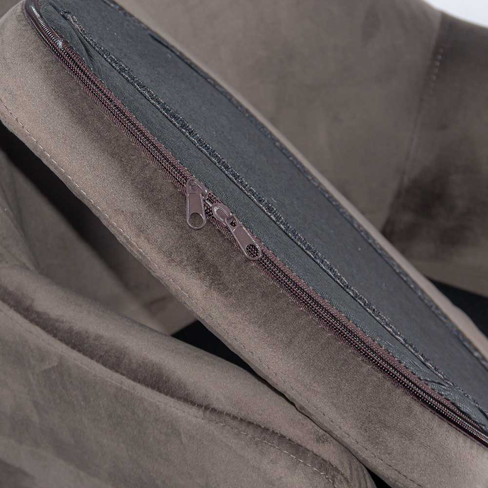 Catifeaua gri de calitate oferă o senzație moale și plăcută, iar șezutul cu grosime de 10 cm asigură confort de lungă durată. Picioarele din lemn de fag și suportul metalic pentru picioare oferă stabilitate și rezistență crescută.