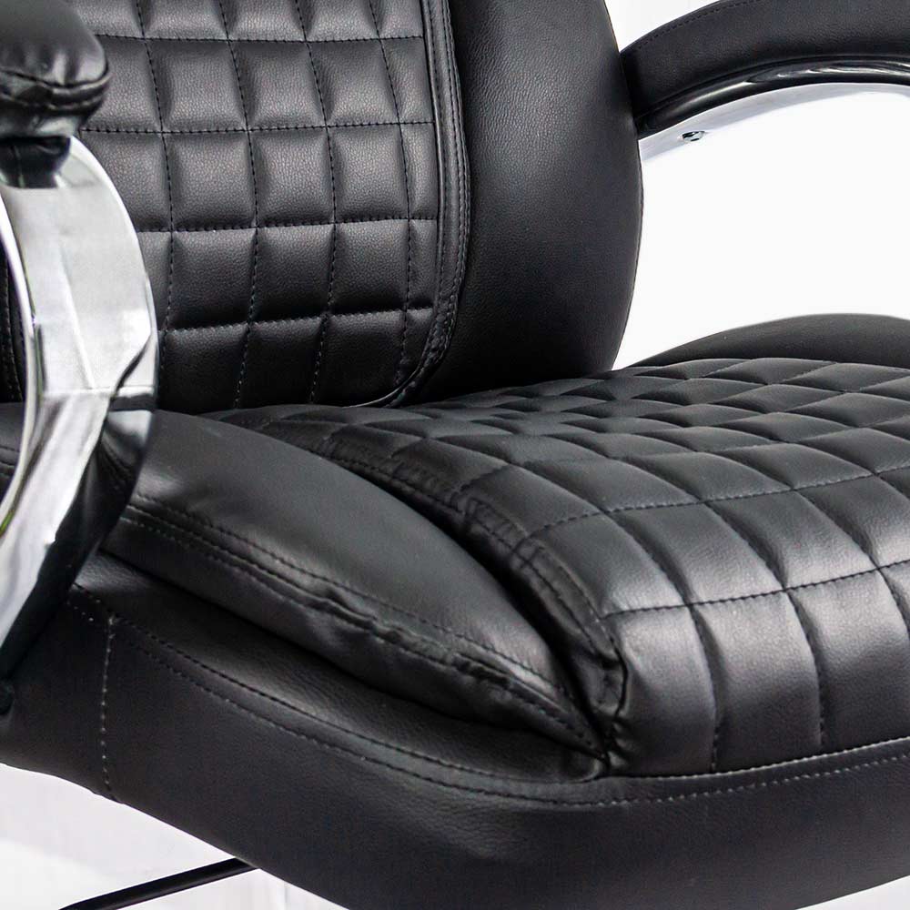 Scaunul directorial reglabil și rotativ negru îmbină funcționalitatea cu un design sobru și elegant. Oferă suport eficient, stabilitate și libertate de mișcare, fiind o alegere practică pentru oricine își dorește confort real în timpul lucrului la birou.
